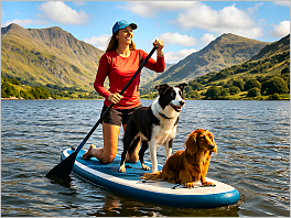 54. paddleboarding in North Wales with two dogs