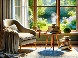 122. A cozy reading nook by a large window, designed to be the perfect tranquil spot for reading and relaxation.