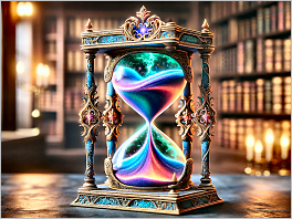 99. An ancient, ornately carved hourglass with colorful swirling sands, set against the backdrop of a library filled with ancient books. This image might add a touch of mystique and timelessness to your jigsaw puzzle collection.