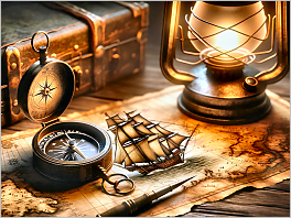 94. Here's the latest creation: A vintage compass on an old map, hinting at adventure and exploration, illuminated by the warm light of an antique lantern. This image should add a sense of exploration and mystery to your collection.