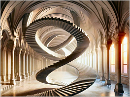 92. Here's a photorealistic image capturing the essence of impossible architecture: A staircase that loops endlessly upon itself, set within an ancient grand hall with arches and columns. The surreal lighting enhances the paradoxical nature of the scene. This should make for an intriguing and challenging jigsaw puzzle with its blend of realism and impossibility.