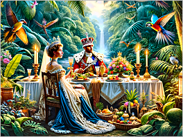 160. An English King and Queen celebrate their wedding anniversary in the jungle.